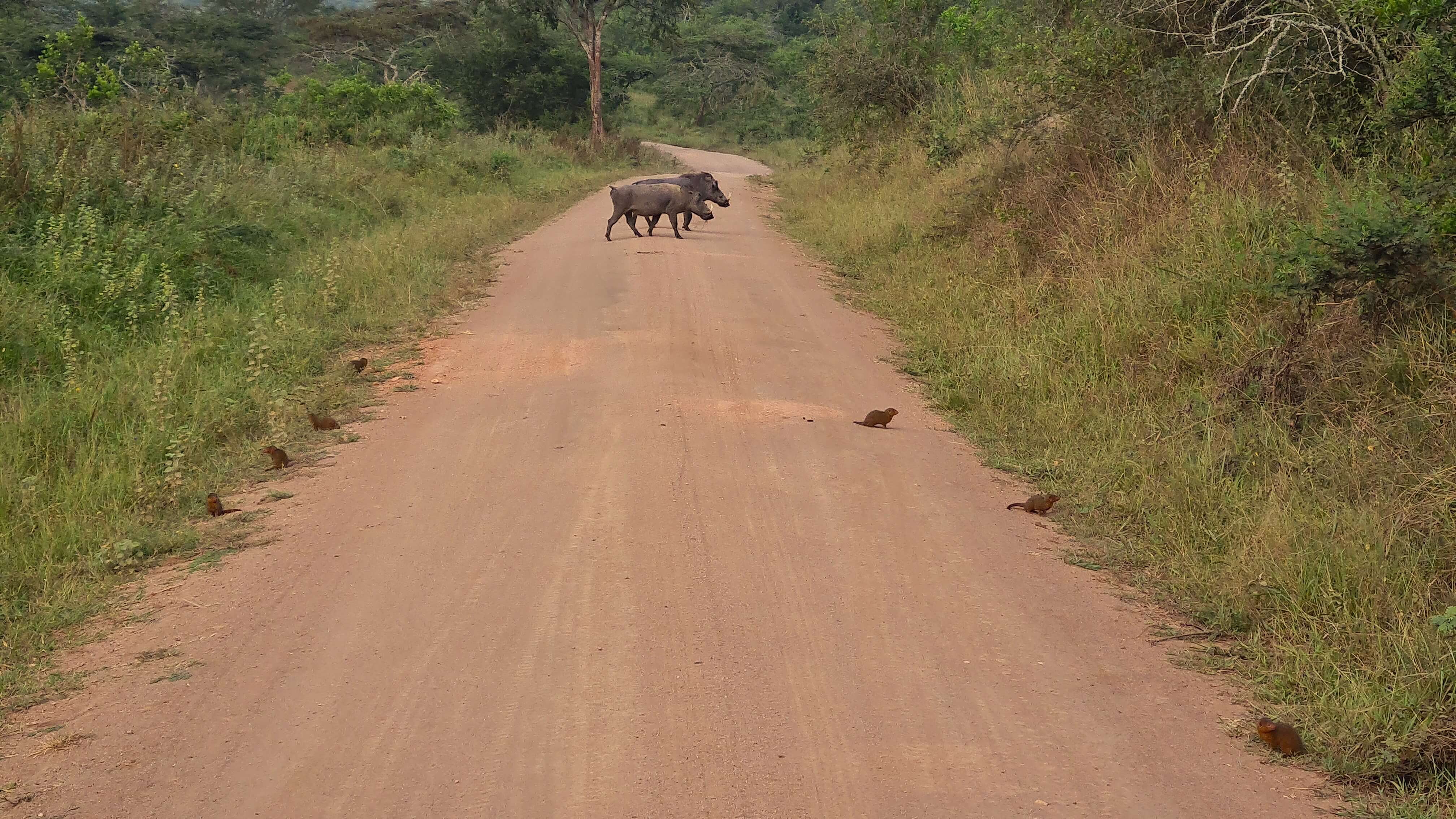Wie süß! Entlang der Straße stehen die putzigen Mangusten für uns Spalier und beäugen uns neugierig.