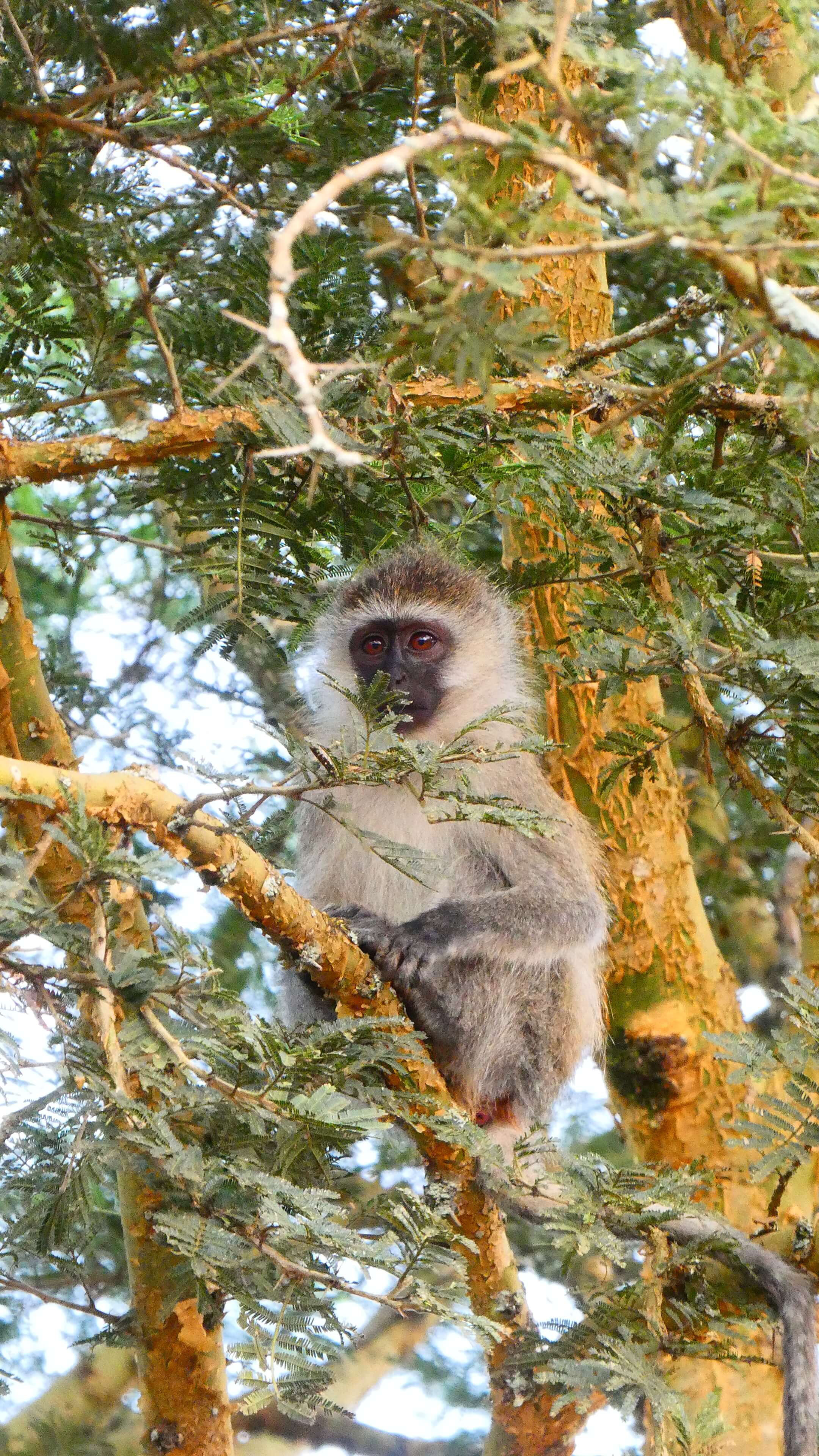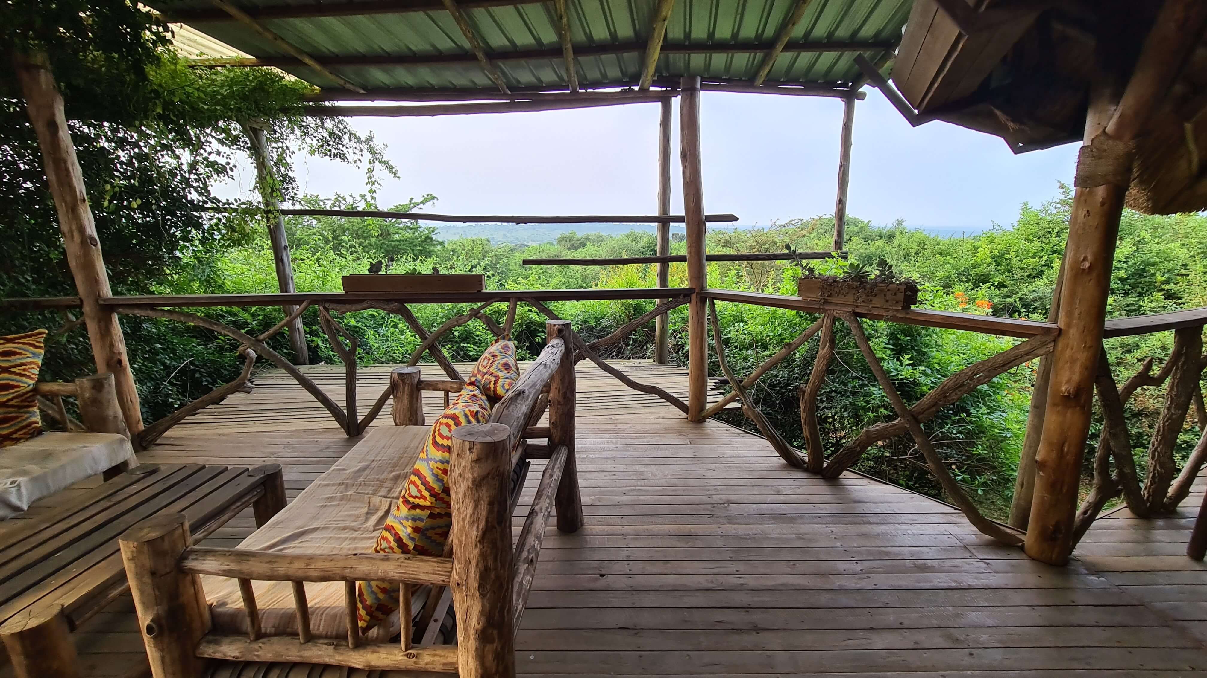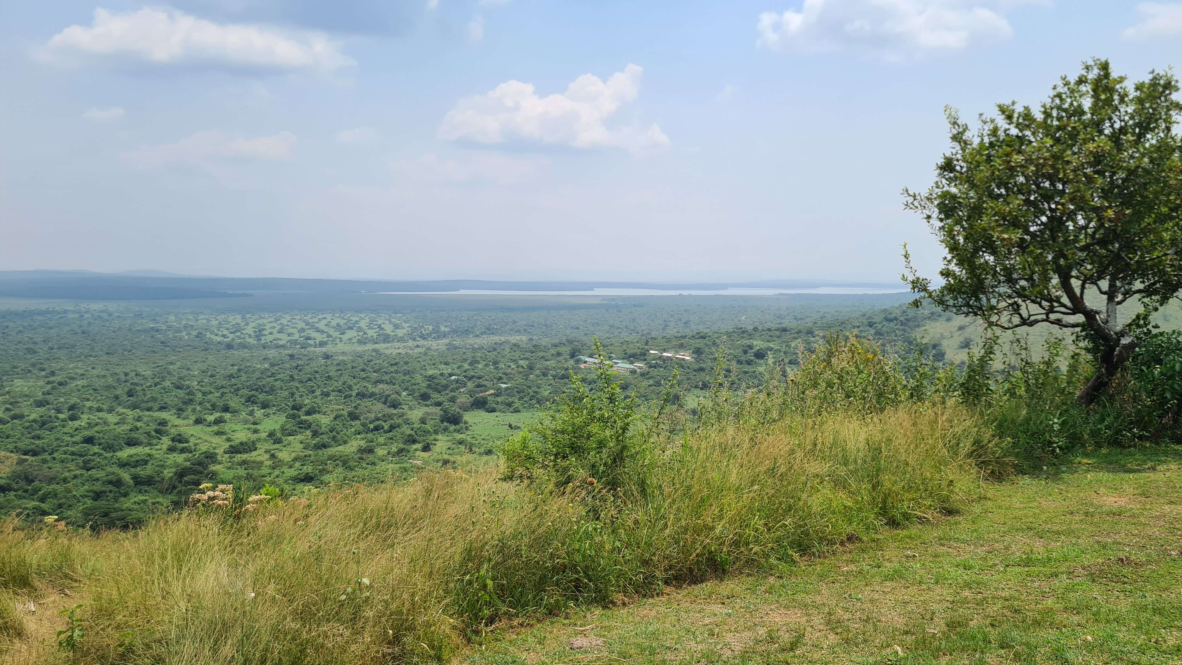 Auf dem Rückweg steuern wir dann das Pier mit dem Ausflugsbooten an. Alle Einrichtungen, einschließlich Toiletten, sind sehr verwahrlost und heruntergekommen. Das See-Idyll hatten wir uns etwas anders vorgestellt. Wir verweilen nur sehr kurz hier und fahren weiter zum nordöstlichen Sanga-Gate, um bei einem Kaffee den Ausblick von der hoch oben gelegenen Eagle’s Nest Lodge auf den Nationalpark zu genießen. Die Lage der Lodge ist nicht schlecht, trotzdem gefällt uns die Atmosphäre und die Lage unseres Leopard Rest Camps besser – und günstiger ist es natürlich auch.