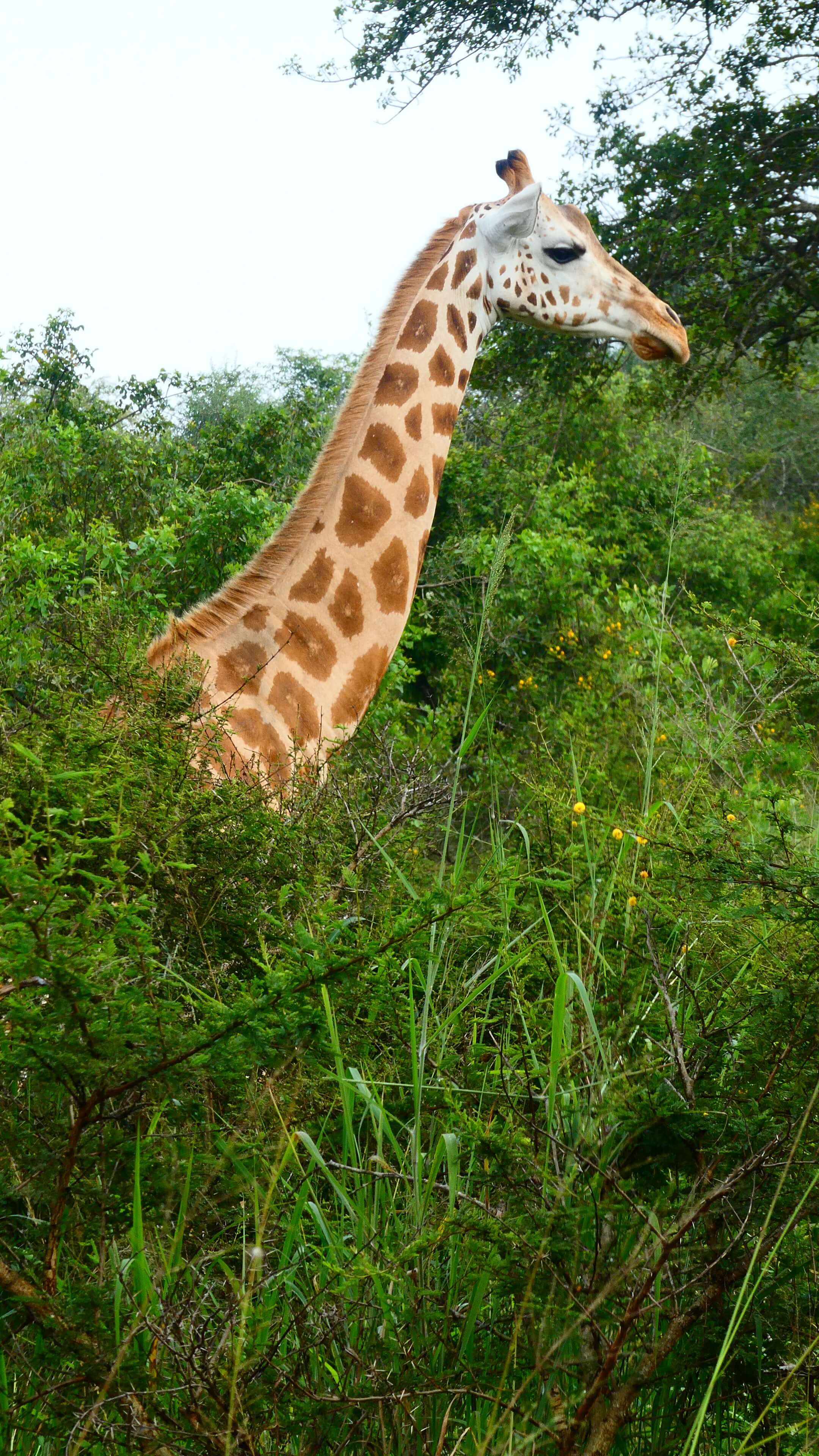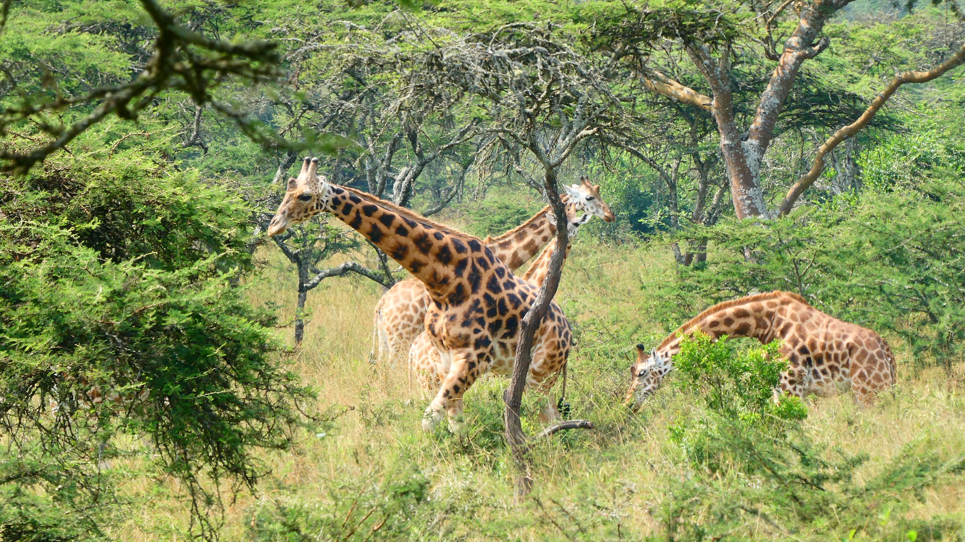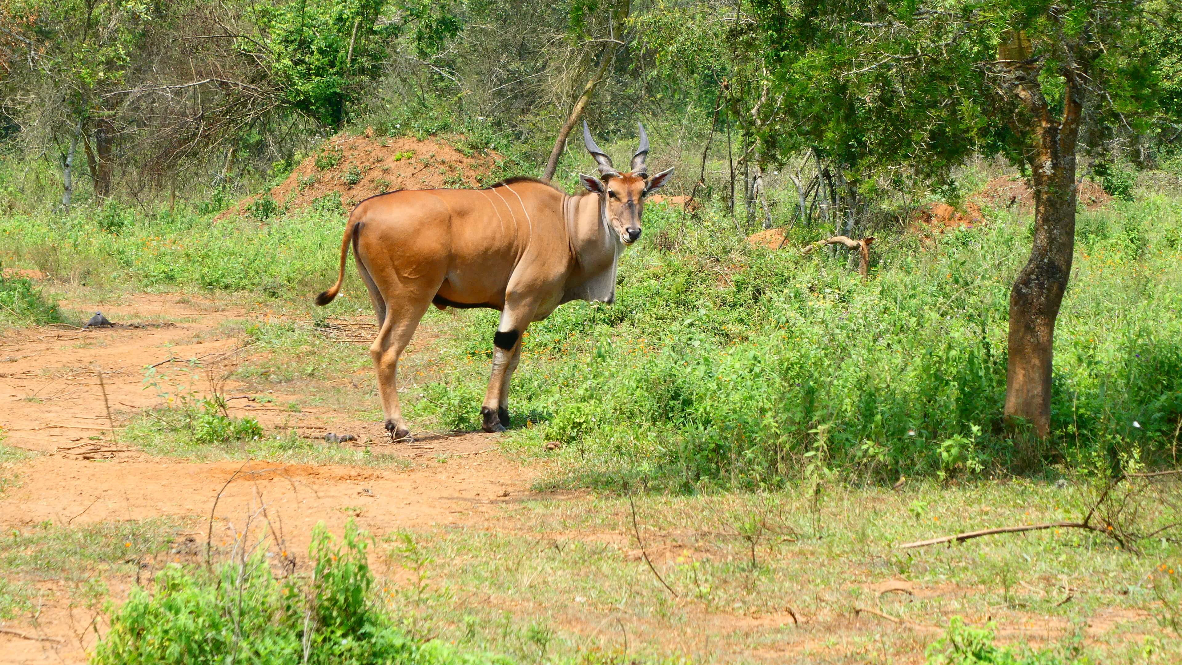 Nach der Pause geht’s wieder rein in den Park und dort auf den Acacia-Track, der auf unserer Printkarte nicht vermerkt ist, aber sehr wohl auf maps.me. Abgesehen davon, dass der gewundene Track durch den lichten Akazienwald wunderschön ist, wird unsere Abenteuerlust auch besonders belohnt. Giraffen und Zebras stehen entspannt in nächster Nähe oder direkt vor uns auf dem Weg. Und Ober-Späher Matthias entdeckt doch tatsächlich im Dickicht auch mehrere der scheuen Eland-Antilopen.
