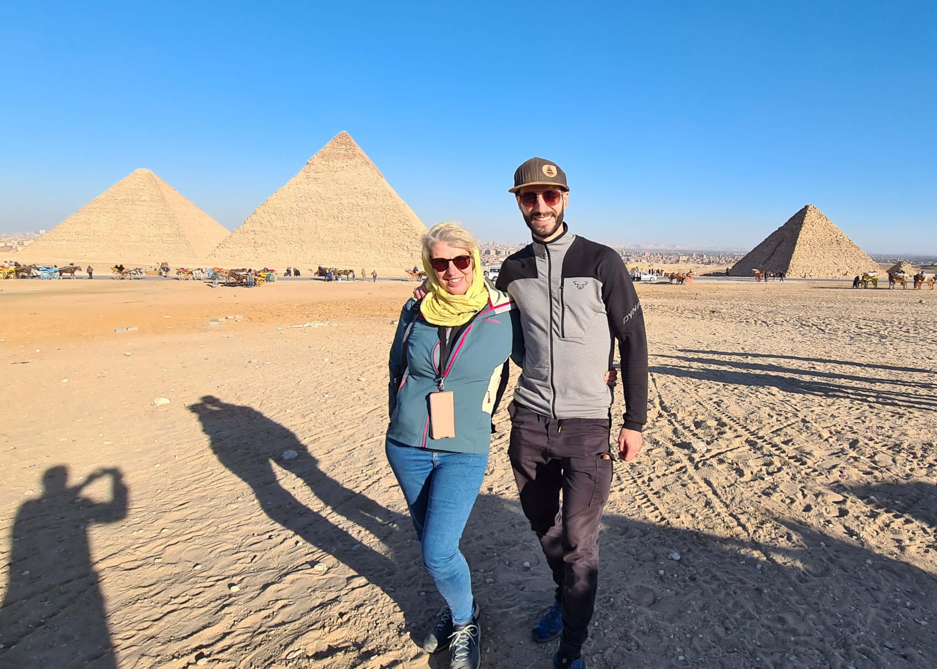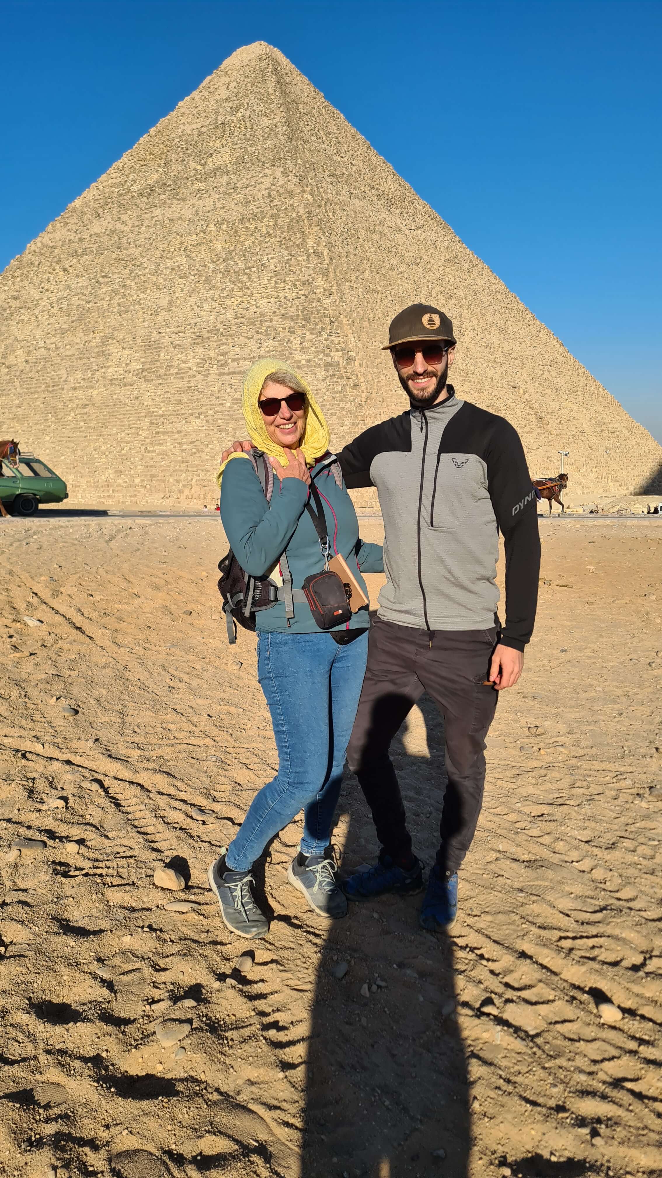 Dazwischen Kamele und Autos, Fotosession hier, Fotosession da und unbedingt einmal Pyramide anfassen 🤦♀️😂