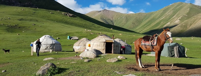 Nach unserer frischen Nacht am Chatyr Köl reiten wir um 10.30 Uhr wieder in Tash Rabat ein und bekommen natürlich zuerst einen Chai kredenzt. Derweil präpariert Milan unser Auto für die Weiterfahrt zum Jurtcamp nahe dem Kel Suu See. Insgesamt dauert die Fahrt 5 Stunden. 2 1/2 geht es zurück über die bestens ausgebaute Strecke in Richtung Naryn vorbei an wunderbaren Landschaften. Nach Süden hin begleitet uns stets die endlos scheinende Kette des Himmelsgebirges. Weiterlesen